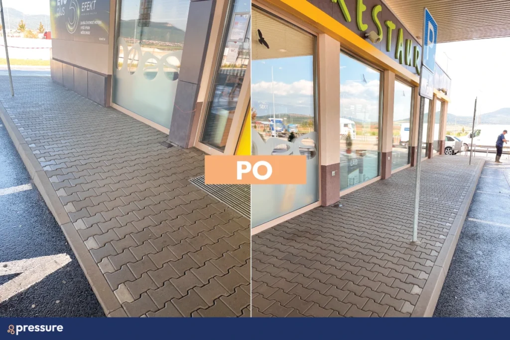 Použili sme vysokotlakové čistiace stroje. Olejové škvrny a prach sa nahromadia veľmi rýchlo, no s použitím správneho tlaku a profesionálnych čistiacich prostriedkov sa ich môžeme efektívne zbaviť bez poškodenia povrchov.