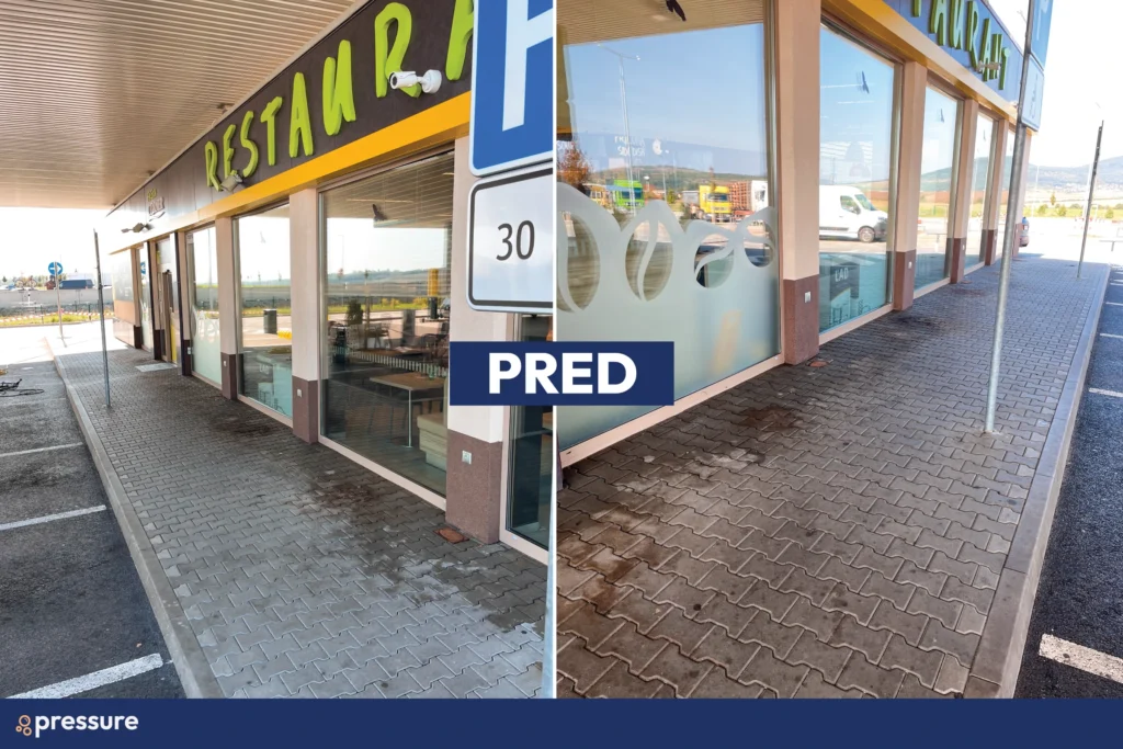 V prvom rade sme dbali na bezpečnosť zákazníkov. Samotné čistenie nie je nebezpečné, avšak v škárach dlažby sa môžu nachádzať kamienky, ktoré pôsobením vysokého tlaku môžu vystrelovať. Preto bolo dôležité uzatvoriť perimeter čistenia.